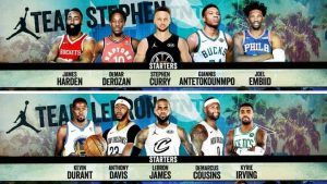 Esta será la primera vez de un All Star en la que no chocan los equipos de la Conferencia Este y la del Oeste. En esta oportunidad, los capitanes los equipos, James y Curry, eligieron a los miembros de sus equipos entre los jugadores más votados para ser titulares y suplentes de cada conferencia.