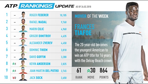 Por el Ranking ATP, se actualizó la tabla y sin jugar Del Potro se posicionó 9 del mundo. Aquí la tabla actualizada:
