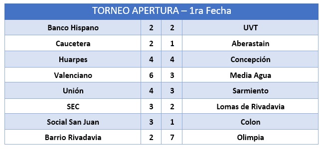 Tras la penosa muerte de Raúl Serafini, dirigente de la federación sanjuanina de patin, la pasada semana, el viernes se dio comienzo a la primera fecha del torneo apertura, y dejó estos resultados: