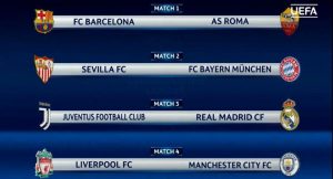 Completando esta el partido de Barcelona que se enfrentará a Roma, y el Bayern Munich recibiendo al sorprendente Sevilla que eliminó al Manchester United en los octavos de final. Si bien son nombres reconocidos en sus ligas, El azulgrana junto con el equipo aleman tienen una llave bastante accesible.