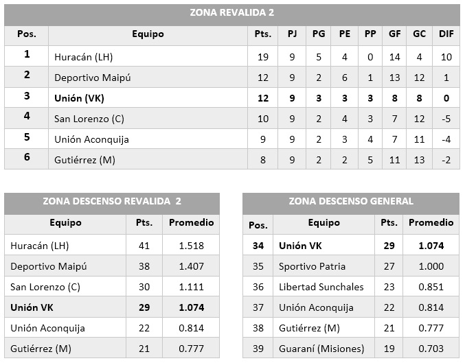 Gran triunfo cosechó el domingo Unión de VK, le ganó por 1 a 0 a San Lorenzo de Catamarca, en el 12 de Octubre y con este resultado, buscará que en la próxima fecha en Mendoza frente a Gutierrez (ya descendido), quedarse en el Federal A.