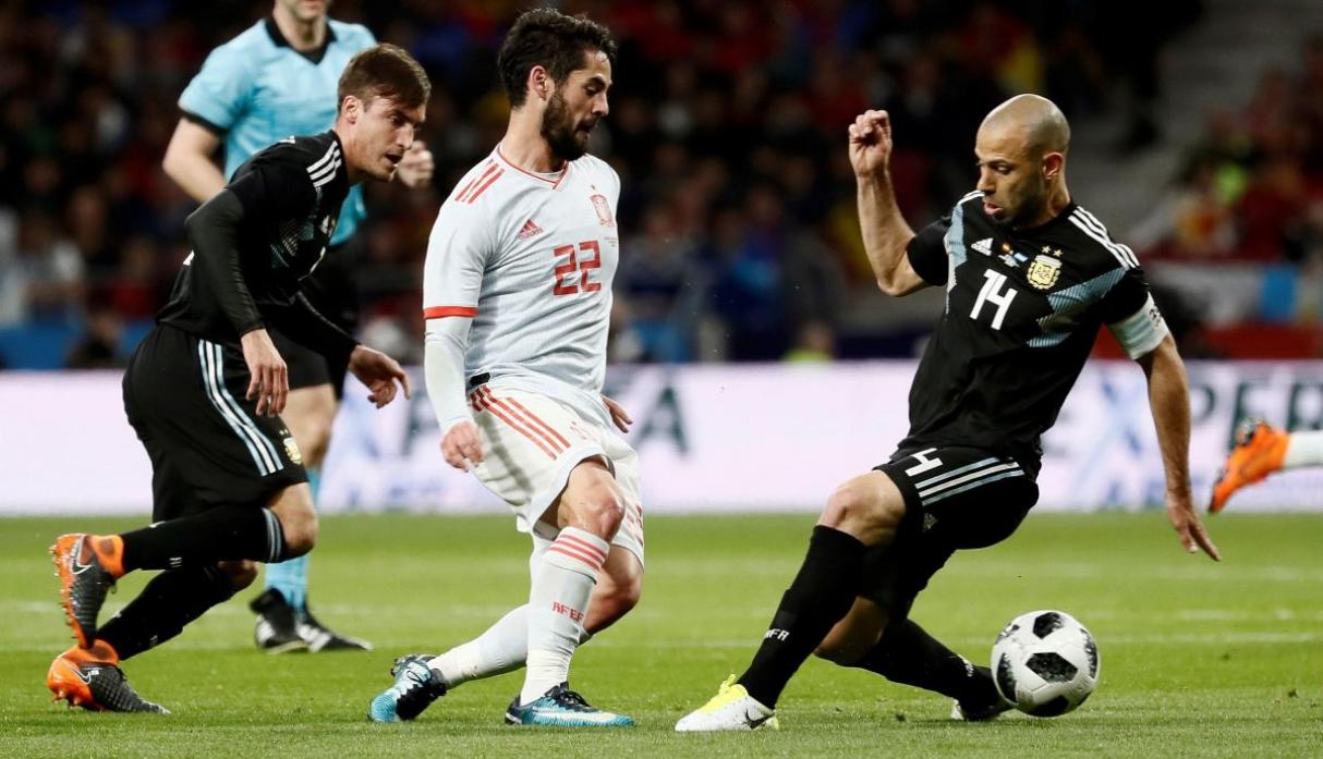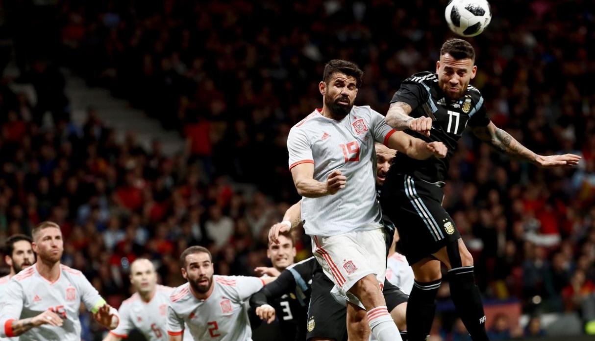 La Argentina al principio buscó jugarle de igual a igual a los españoles pero no lo consiguió, los españoles rapidamente en el primer tiempo se ponian 2 a 0 mostrando su gran juego colectivo. Los de Sampaoli quisieron volver a retomar el camino con el gol de Otamendi tras un centro de Banega. Pero en el segundo tiempo España fue mucho mas contundente y le convirtió 4 goles más.