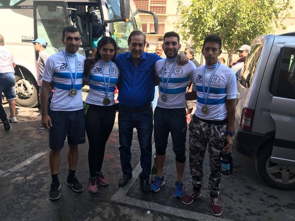 Familiares y amigos recibieron entusiastamente a los campeones, junto al Presidente de la Federación Ciclista Sanjuanina, Juan José Chica, acompañado por Javier Páez, en representación de la Secretaría de Deportes.