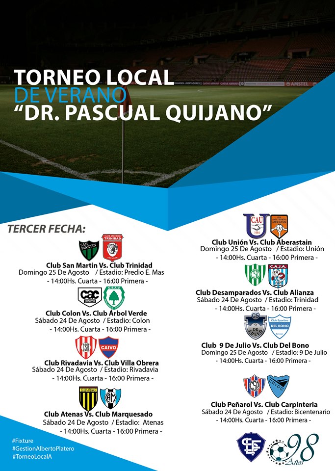 Se programó la tercera fecha del Torneo de verano de Liga Sanjuanina de Fútbol. La misma comenzará a disputarse este fin de semana y quedó de la siguiente manera: