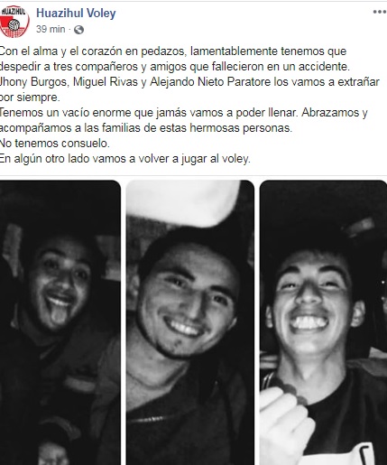 La comunidad deportiva del vóley y en especial la de Huazihul se ha visto consternada por la noticia y ese dolor lo han expresado en redes sociales.