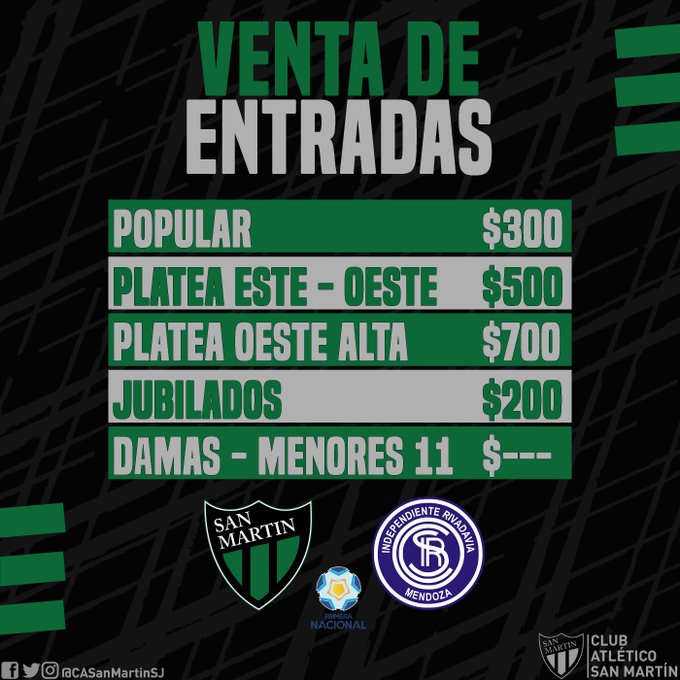 La dirigencia de San Martín, comunicó el precio de las entradas y los horarios disponibles para su compra: