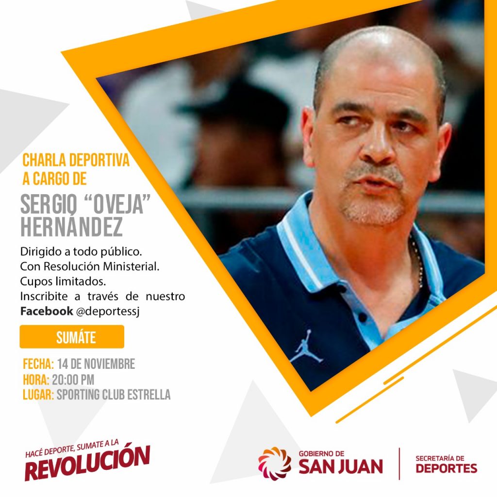 Este jueves, Sergio Hernández, el actual entrenador de la Selección Argentina de básquet brindará una charla deportiva a las 20 horas en el Sporting Club Estrella. “Oveja”, logró obtener la medalla de oro en el FIBA Diamond Ball 2008 y la medalla de bronce en los Juegos Olímpicos de Pekín. Este año participó en el Mundial de China, donde consiguió que el equipo saliera subcampeón.