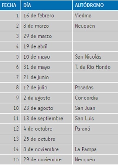 A continuación, y si bien no es oficial sino los casilleros fueron completados por lo comentado por el presidente de la ACTC, un repaso de las fechas y las posibles plazas.