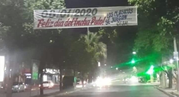 Tras el pedido de no jugarlo, los de Concepción salieron a cargarlos en plena plaza de Desamparados con un pasacalle que dice: 08/01/2020 Feliz día del hincha p…! los clásicos se juegan, “firma CASM» .