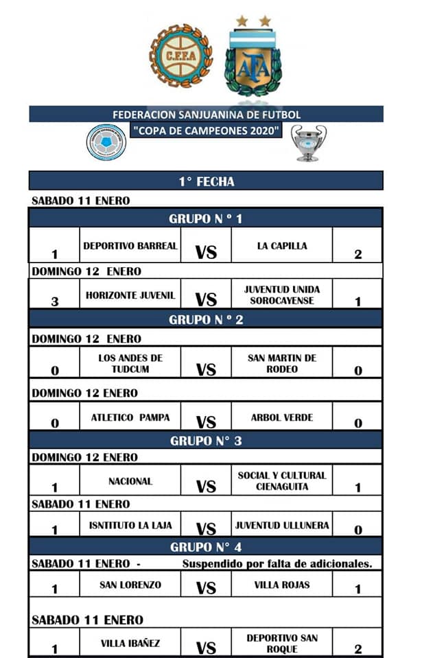 Durante el fin de semana puso primera la Copa de Campeones que nuclea a varios clubes de la provincia. El partido principal tuvo lugar en Valle Fértil donde quedó oficialmente inaugurado de la edición 54 del certamen.