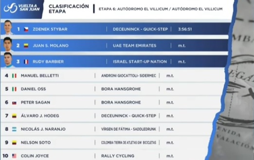 El podio lo completó el colombiano Molano y el francés Rudy Barbier, el ganador la primera etapa.