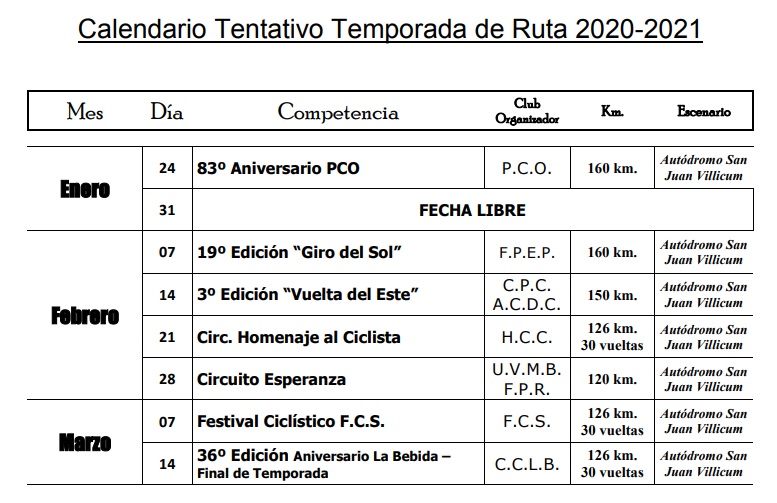 Hacé clic aquí para descargar el nuevo y tentativo calendario de ruta 2020-2021.