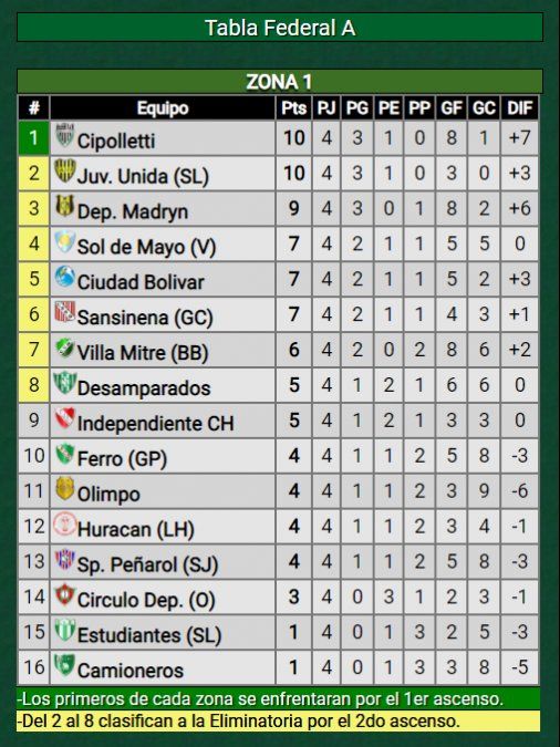 El resto de los partidos de la Zona Sur