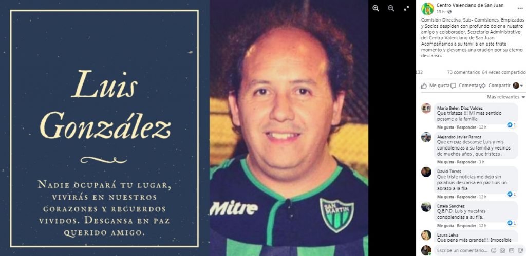 El secretario administrativo del Centro Valenciano, Luis Gonzalez, falleció en las últimas horas a causa de coronavirus.