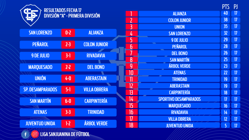 Este lunes, se completó la Fecha 17 del Torneo Local de Primera División, y se conocieron los cruces de semifinales de Primera y cuarta, que serán los siguientes: