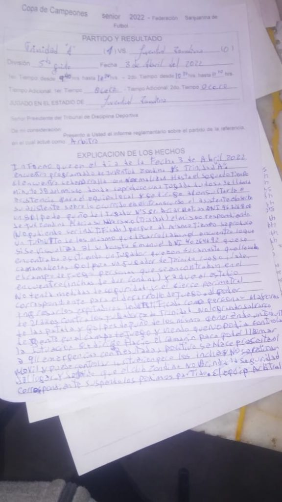 Jugaban un partido de inferiores, si inferiores leyó bien, era la quinta división de Trinidad que visitaba a Juventud Zondina en el departamento del Oeste de San Juan. Parecía que podía ser un lindo día normal de futbol, pero no, no fue así.