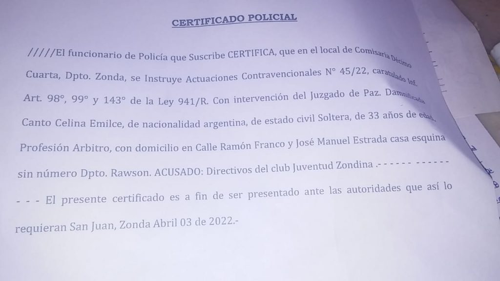 Por este episodio Sanjuandeportes.com charló con Celina Cantó que fue la jueza principal del encuentro y nos contó en carne propia lo que vivió y luego terminó con denuncia policial incluida.