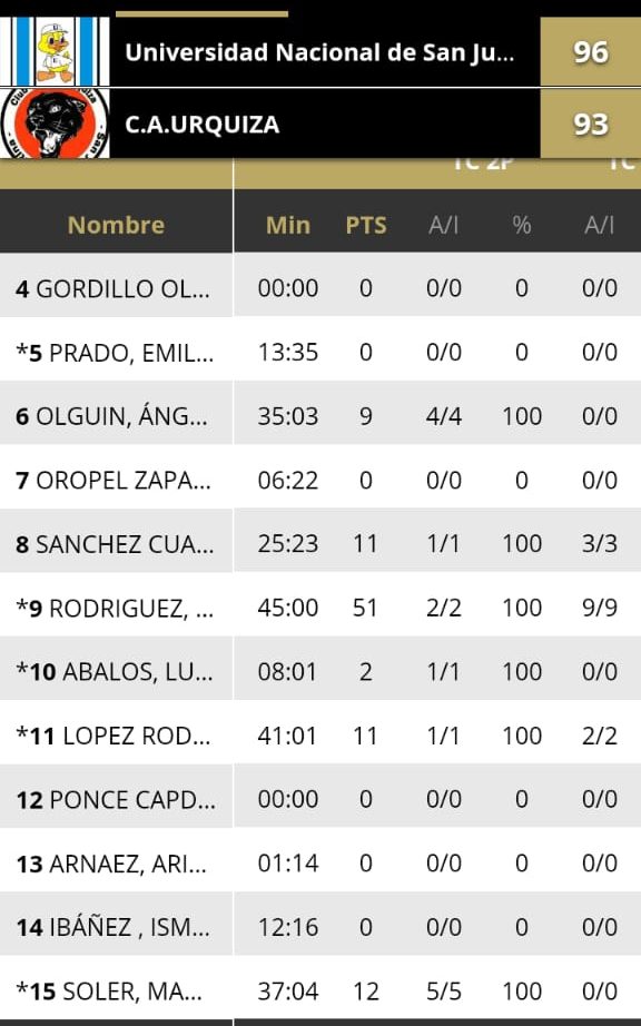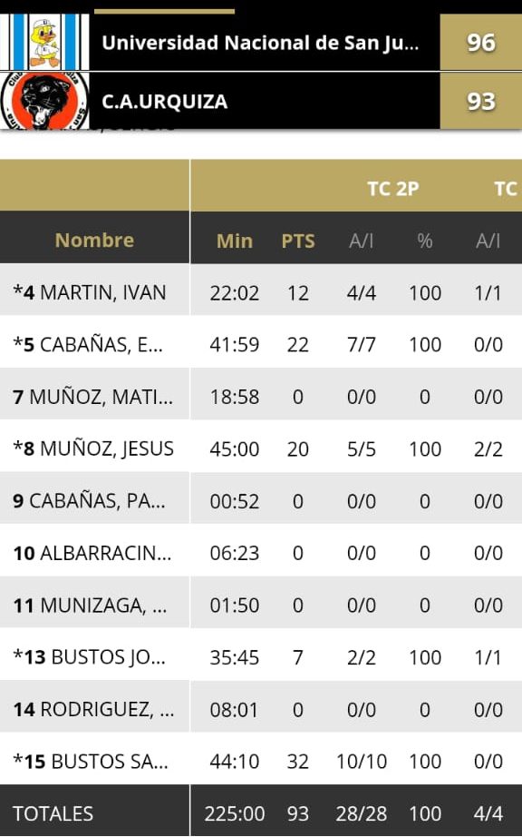 ESTADISTICAS UNIVERSIDAD 96 – URQUIZA 93