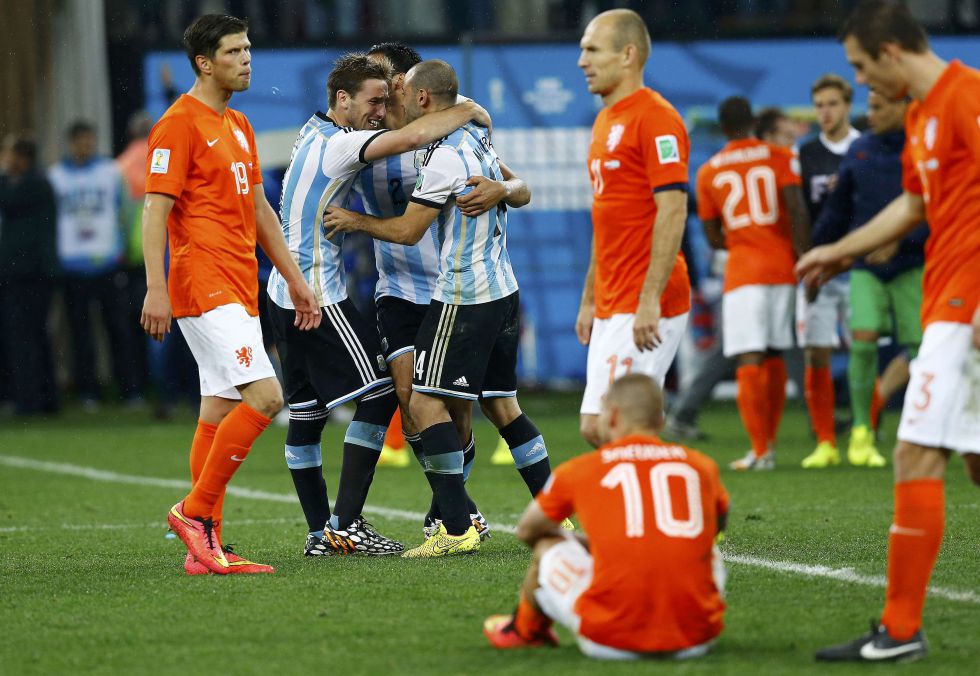 Pero además de esta recordada vez, nos tocó cruzarnos con Holanda varias veces en instancias mundialistas, la gran final del 78 que fue consagratoria para Argentina en el Monumental. En el Mundial de Alemania del 74 se enfrentaron en la fase de grupos y Holanda ganó 4 a 0. También En fase de grupos del Mundial 2006 de Alemania con Pekerman como DT se enfrentaron en la tercera fecha los dos equipos ya clasificados. Y el recuerdo mas fresco con los holandeses es de Brasil 2014, cuando Argentina ganó en los penales con la recordada frase de Mascherano a Sergio Romero «Hoy te convertís en Héroe».