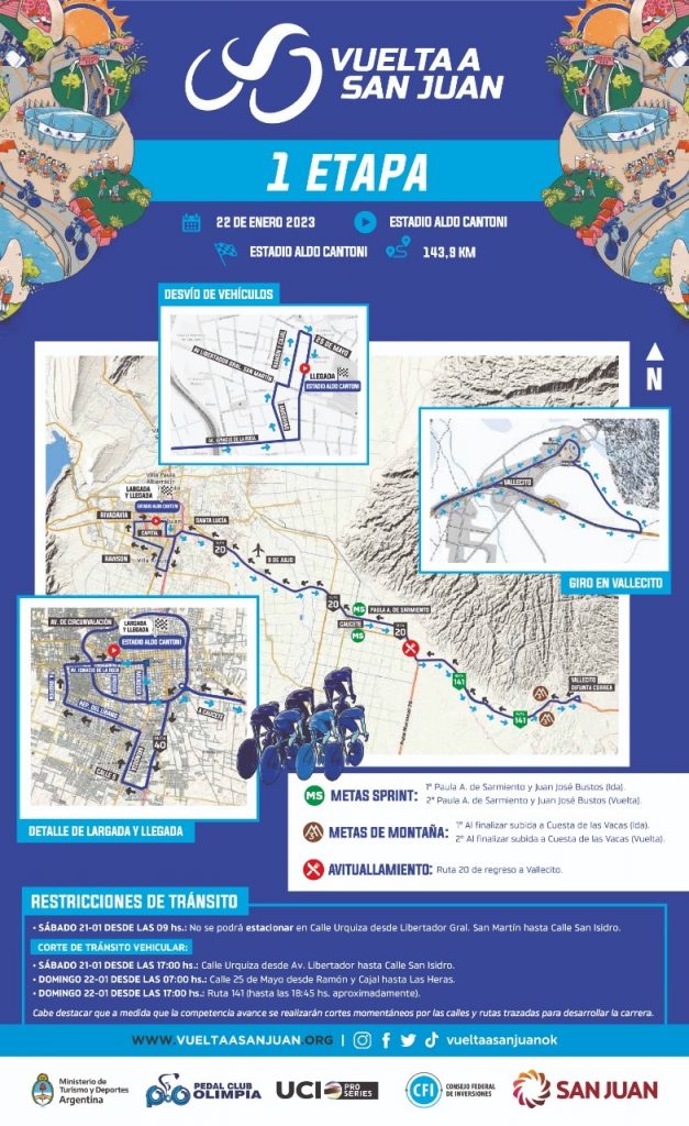 - Recordar que se realizarán cortes de tránsito vehicular transitorios durante el paso de la competencia en las calles, avenidas y rutas especificadas en el recorrido de la Etapa 1