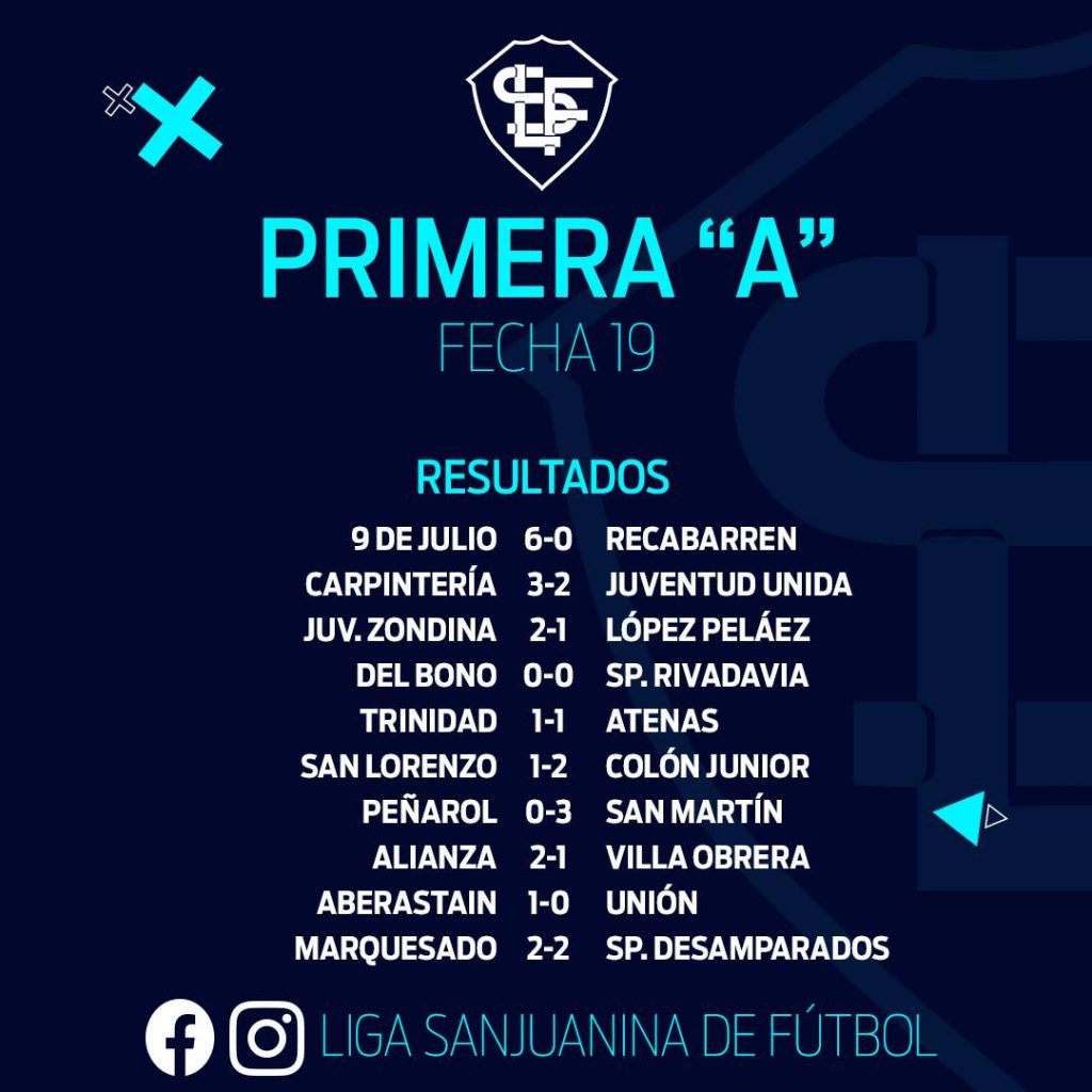 Por ahora, los dos cruces que están confirmados en la ida de los Cuartos de Final son Desamparados-Trinidad y Marquesado-San Martín, mientras que San Lorenzo y Colón Junior que finalizaron en las posiciones 1 y 2 de la tabla, aguardan lo que pueda suceder con Juventud Zondina, que en el caso de no prosperar la protesta en su contra sería rival del Merengue, mientras que López Peláez podría ingresar como octavo clasificado para enfrentar a San Lorenzo de Ullum.