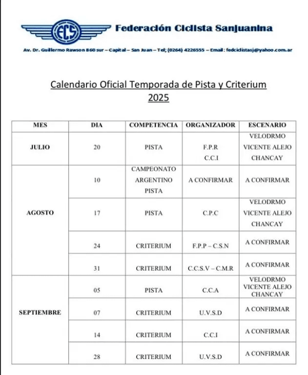 La Federación Ciclista Sanjuanina mantiene abiertas las definiciones para algunos detalles de la temporada, pero el calendario ya establece un marco claro para que ciclistas y aficionados planifiquen su participación y asistencia a las competencias.