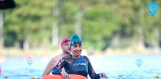 Beatriz Lund cruzó a nado el Dique Punta Negra