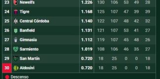 Cómo quedó la tabla de descenso