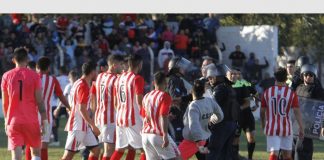 Violencia en el fútbol: el momento de la pelea y abandono...