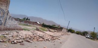El fuerte viento tiró una pared del Club Sportivo Rivadavia